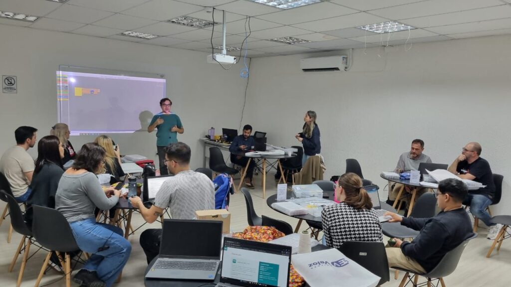 A Formação Continuada da Rede Municipal de Ensino de Itapema teve continuidade nesta terça-feira (18/06), com um encontro especial voltado aos professores do Projeto Robótica nas Escolas. A capacitação foi conduzida pelos formadores Simone Leitão e Adriano Ricardo Vargas.