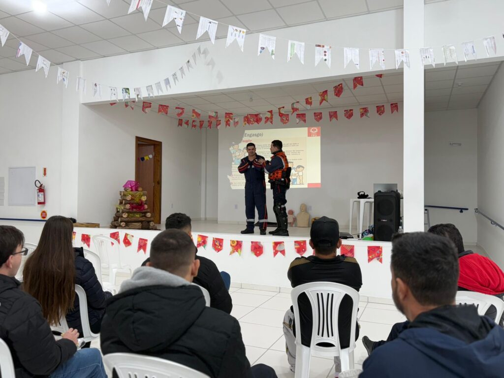 O médico Dr. Diogo conduziu uma conversa sobre orientações gerais de saúde voltadas ao público idoso, trazendo pontos de atenção e cuidados essenciais no cotidiano. Já os enfermeiros do SAMU Alex Moreira, Edinei de Souza e Marcelo Fabra compartilharam técnicas de primeiros socorros com foco em situações como Infarto Agudo do Miocárdio (IAM), Acidente Vascular Cerebral (AVC) e quedas – situações comuns e que exigem preparo adequado por parte das equipes.