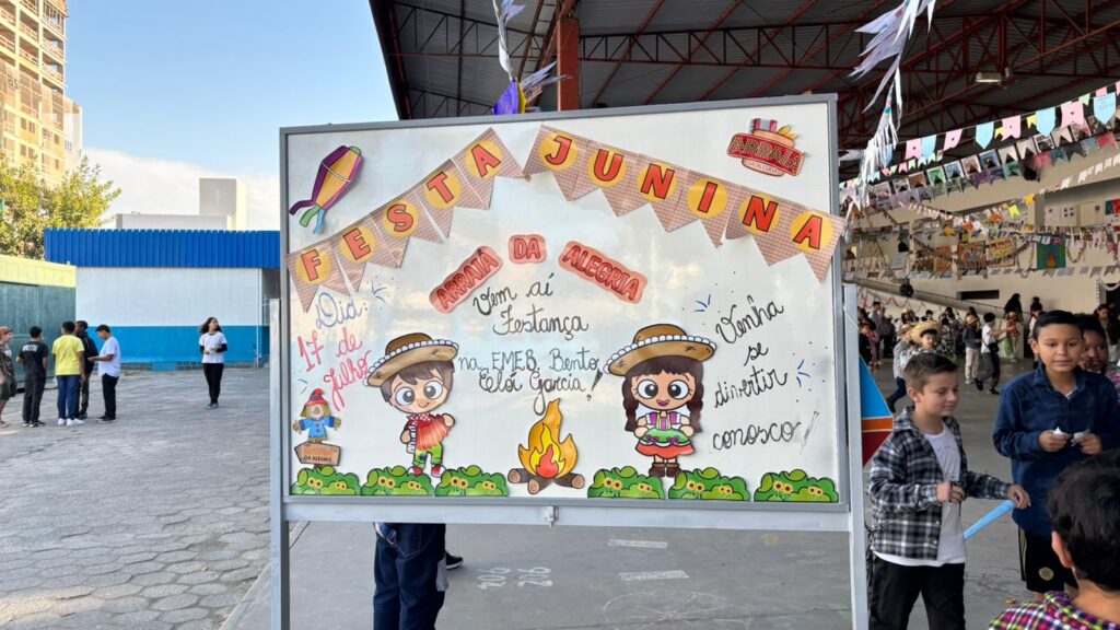 A EMEB Bento Elói Garcia, no bairro Morretes, fechou o semestre nesta quinta-feira (17), com uma animada Festa Julina que tomou conta do pátio da escola. O evento marcou o último dia de aula antes do recesso escolar e garantiu muita diversão para os alunos.
