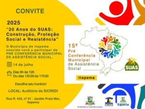 Destaques Itapema Pré-Conferência discute os 20 anos do SUAS e convida população para construção coletiva da assistência social Julho 12, 2025