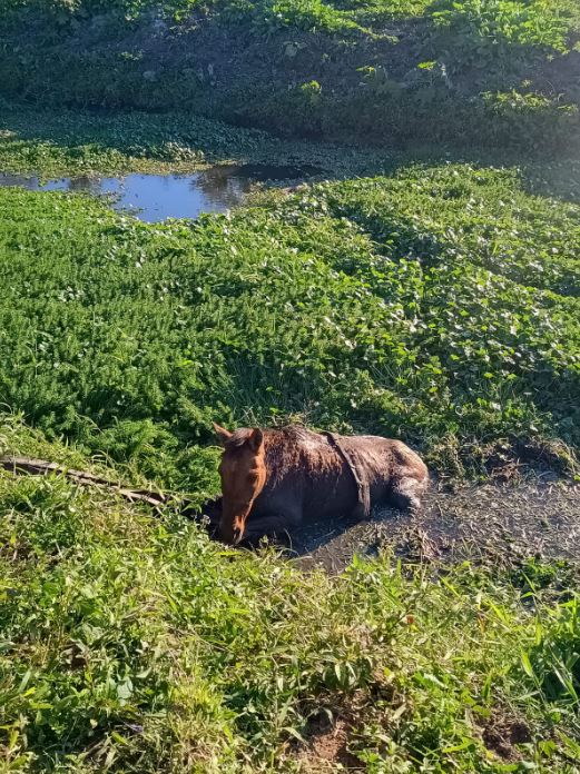 O animal encontrava-se atolado no lodo, com apenas a cabeça fora da água, o que exigiu ação rápida dos bombeiros. No local, foram acionados órgãos de apoio, incluindo o Grupo de Operações de Resgate (GOR), e solicitada uma retroescavadeira da prefeitura para auxiliar na operação.
