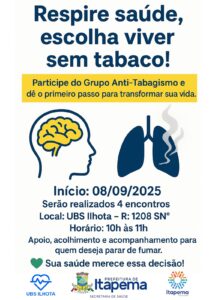 Destaques Itapema UBS Ilhota promove encontros de apoio para quem deseja parar de fumar Agosto 20, 2025