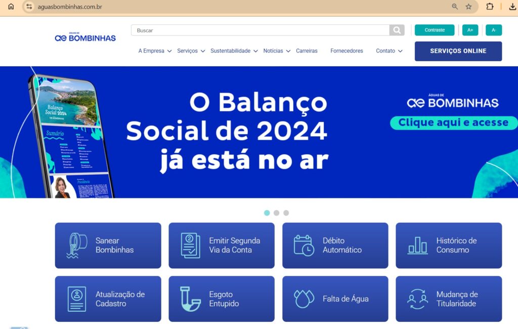 Através do site oficial https://aguasbombinhas.com.br/, os clientes podem realizar diversas atividades de forma prática e rápida, como consultar o histórico de consumo, acompanhar o status de solicitações e solicitar mudanças de endereço, entre outros serviços.