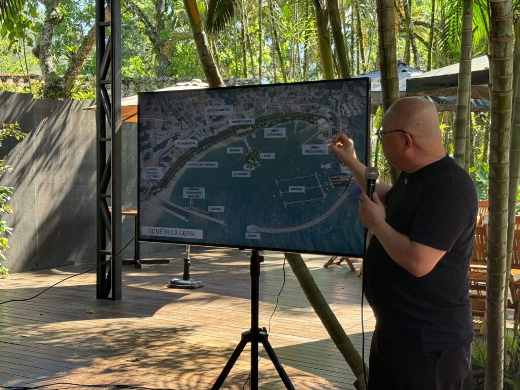 Entre as propostas destacadas estão a recomposição da vegetação costeira e do ecossistema de restinga, a implantação de uma marina para valorizar o potencial náutico da região e a criação de espaços de contemplação, esporte e bem-estar. O projeto também contempla rua elevada, ciclovia, quiosques, terminal de transporte marítimo, centro turístico e cultural, além de uma ilha com anfiteatro, playground, restaurantes e espaço para feiras.
