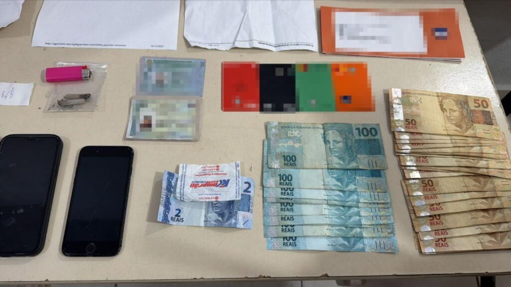 Com os autores e no interior do veículo foram encontrados R$ 2.102,00 em espécie, alguns comprovantes bancários, cartões de crédito e três aparelhos celulares, além de 0,2 g de maconha, cuja posse foi assumida pelo autor de 25 anos.