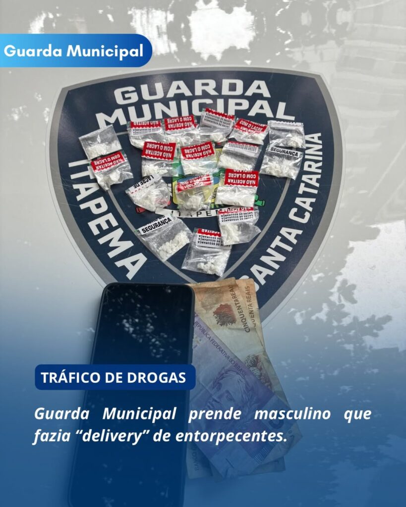 Durante patrulhamento preventivo nas proximidades da praça de skate, na Rua 306 com a Rua 306A, a Guarda Municipal de Itapema realizou a prisão de um indivíduo por tráfico de drogas.