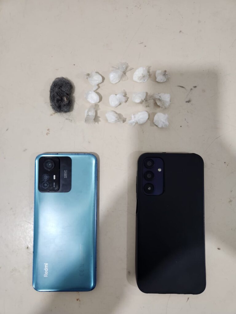 A ação foi desencadeada após denúncias indicando a comercialização de entorpecentes em uma residência já conhecida por ocorrências anteriores relacionadas ao mesmo crime. Durante a abordagem, os policiais localizaram porções de substância semelhante à cocaína, além de dinheiro em espécie e aparelhos celulares.