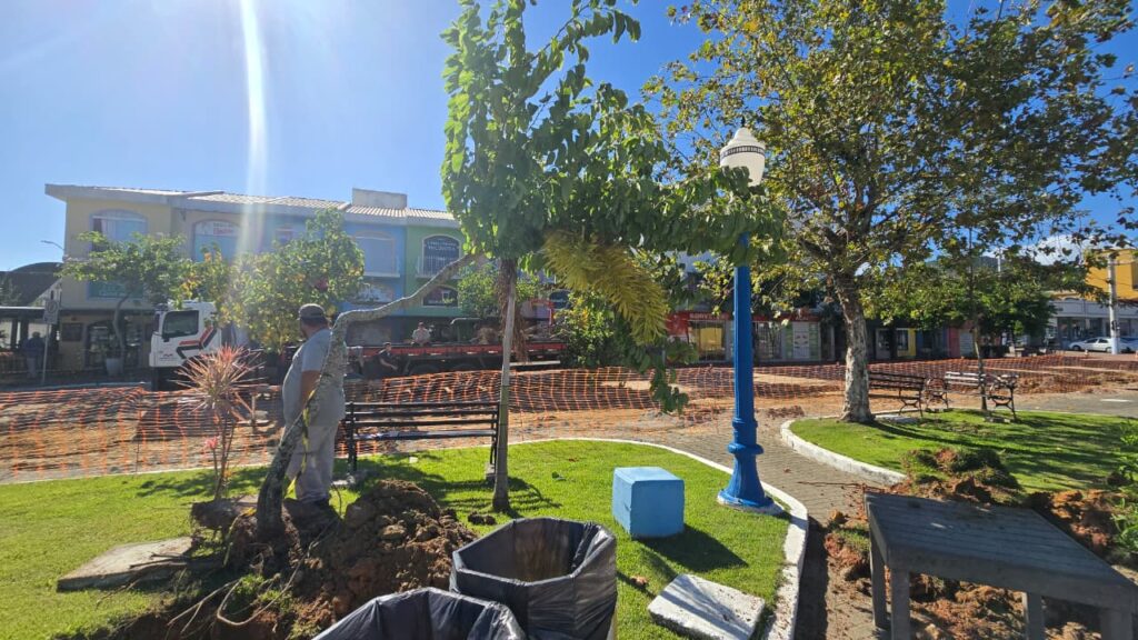 Porto Belo realiza transplante de árvores da Praça da Bandeira para avanço das obras da Rua Coberta
